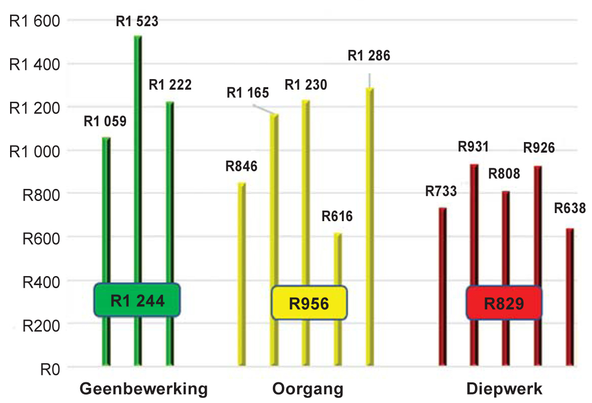 - Die diepwerkgroep se gemiddelde koste vir die vyf jaar was R2 536/ha.