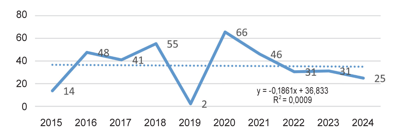 Die maksimum temperature oor al die maande, met die uitsondering van Desember, het ’n effense stygende tendens getoon. Desember se dalende tendens hou moontlik verband met veral 2019 en 2021, waartydens die gemiddelde maksimum temperature heelwat laer as die ander jare was.