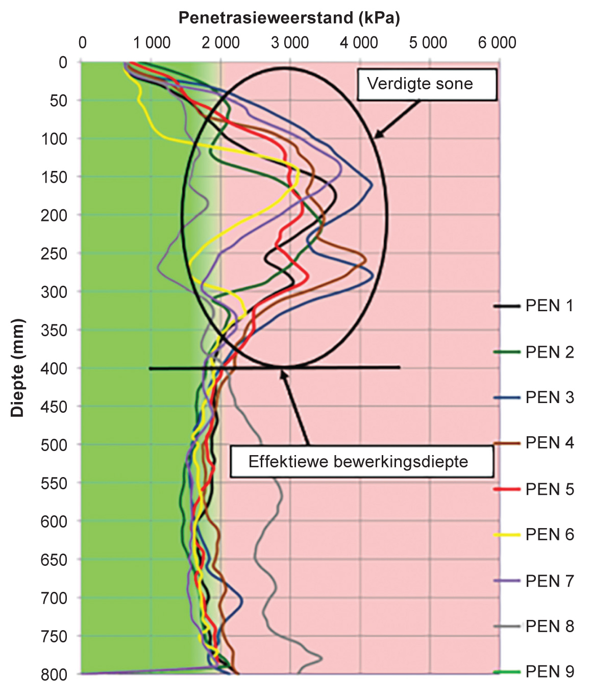 Figuur 1: ’n Voorstelling van ’n verdigte sone en die doeltreffende bewerkingsdiepte.