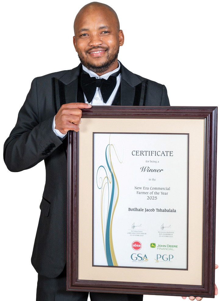 Botlhale Jacob Tshabalala, the 2025 Grain SA/Absa/John Deere Financial New Era Commercial Farmer of the Year at