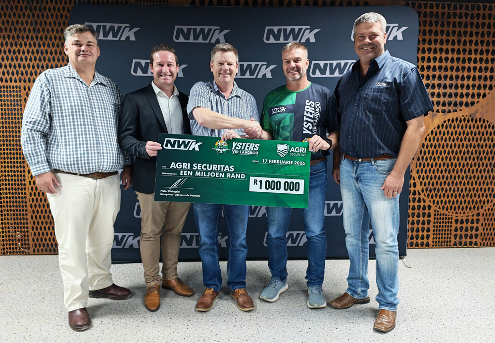Die geld is reeds aan Agri Securitas oorbetaal en ‘n denkbeeldige tjek is Dinsdag (17 Februarie 2026) aan Cobus en Jason Kümm (landelike veiligheidsbeampte by Agri Securitas) by ‘n geselligheid by NWK se opleidingsentrum in Lichtenburg oorhandig.